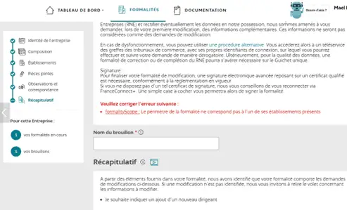7ème bug relevé sur l’INPI : “un brouillon de votre formalité a été enregistré. Vous serez contacté par l’INPI sous les meilleurs délais afin de finaliser votre formalité.”