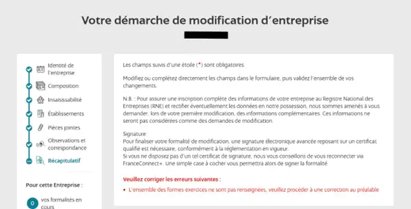 Explication : Impossibilité de changer l’adresse de l’entreprise via le site de l’INPI.