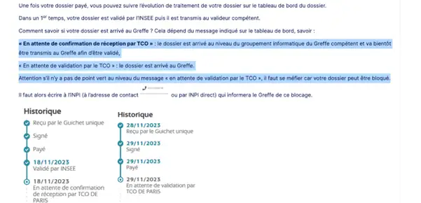 Explication : Si vous recevez ce message, attendez que l’INPI vous contacte pour finaliser la formalité. Si le délai est trop long, contactez l’INPI directement.