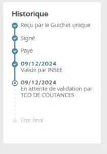 L’état « En attente de validation par le greffe » de la formalité sera affiché dans le fil d’Ariane jusqu’à ce qu’elle soit soumise au greffe pour un examen juridique et un traitement, améliorant ainsi la clarté du statut des formalités.