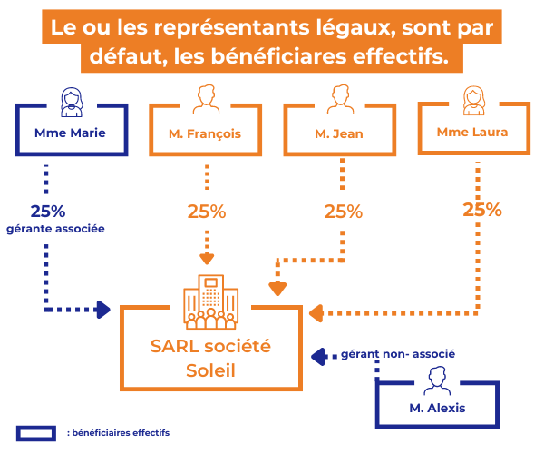 Monsieur Alexis et Madame Marie sont les bénéficiaires effectifs de la SARL Société Soleil.