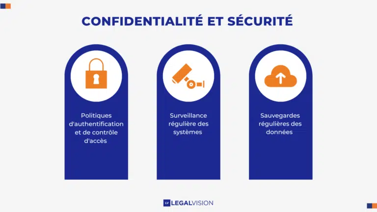 Afin d’assurer la confidentialité et la sécurité de vos données juridiques vis-à-vis de vos clients, il est impératif de s’assurer que les prestataires de services mettent en place des mesures de sécurité adéquates. Parmi les mesures évoquées, nous pouvons notamment citer :