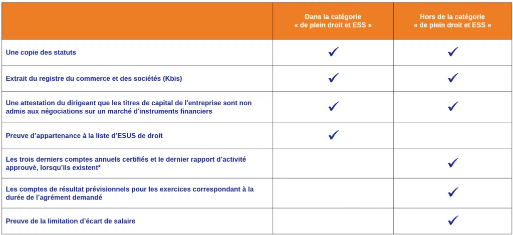 Il existe des différences dans la constitution du dossier à la DREETS selon si l’entreprise s’inscrit ou non dans la catégorie « de plein droit et ESS ».