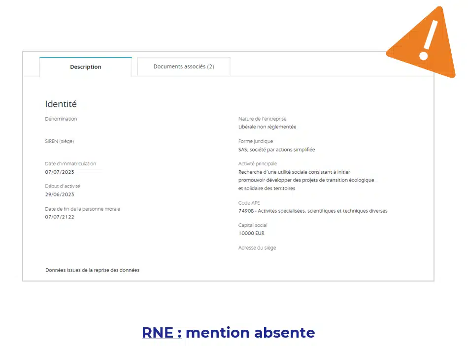 Mention présente sur le Guichet Unique mais absente au RNE :
