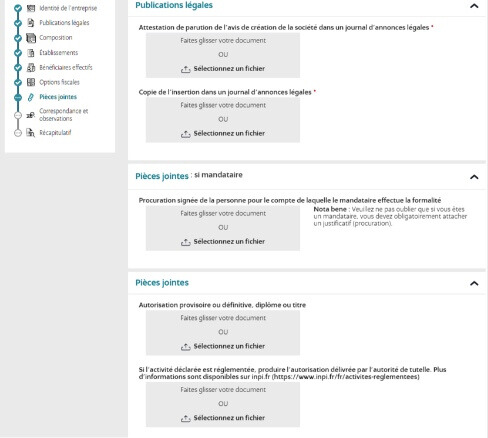 Les formalités d’immatriculation d’entreprise sont réalisables sur le Guichet Unique opéré par l’INPI. Le demandeur doit transmettre en ligne l’ensemble des informations requises pour la procédure et joindre les pièces nécessaires de façon dématérialisée.