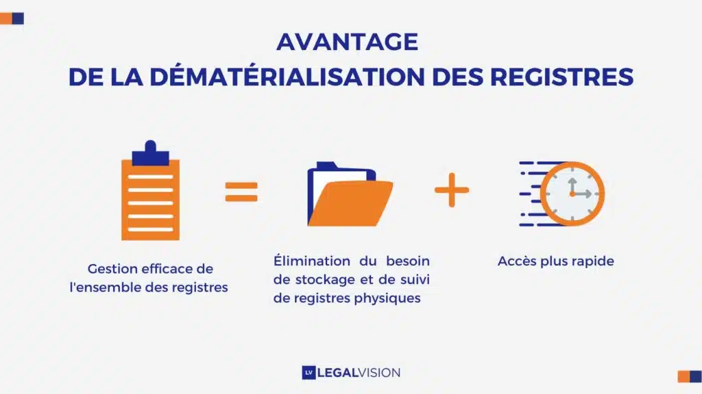 La dématérialisation des registres permet une gestion plus efficace de l’ensemble des registres liés aux sociétés. Par exemple, une direction juridique qui gère les affaires juridiques annuelles de toutes ses filiales nécessiterait au minimum deux registres papier par société gérée. De plus, au moins une assemblée générale extraordinaire doit être enregistrée dans le registre des assemblées, ce qui peut entraîner une volumétrie importante de documents physiques à gérer. La dématérialisation simplifie cette gestion en éliminant le besoin de stockage et de suivi de registres physiques, tout en permettant un accès plus rapide et une meilleure organisation des données juridiques.