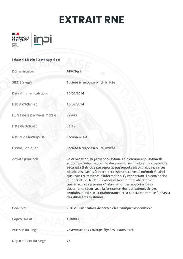 Les banques, par exemple, demandent désormais systématiquement cet extrait RNE dans le cadre de l’ouverture de comptes professionnels, délaissant peu à peu l’extrait Kbis, payant et moins précis. Cet extrait RNE bénéficie d’une valeur probante grâce à son intégrité renforcée par des dispositifs de sécurité, comme la Marianne en filigrane et le logo de la République française.